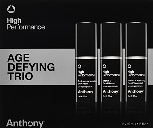 -. Binding : Health and Beauty -. Brand : Anthony -. EAN : 0802609960675 -. Feature : Anti-Aging can get tricky, especially if you are new to it. As soon as you see signs of aging around the eyes or when your skin loses moisture too quickly, you should to start an anti-aging routine. They say, good things come in threes ... So does the High Performance Age Defying Trio. It starts you off with anti-aging basics — an eye cream, Vitamin C Serum, and Vitamin A Hydrating Lotion.High Performance Continuous Moisture Eye Cream: Time-released, formula that helps prevent pr... -. IsAutographed : 0 -. IsMemorabilia : 0 -. Label : Anthony -. Manufacturer : Anthony -. MPN : 107-14009 -. PackageQuantity : 1 -. PartNumber : 107-14009 -. ProductGroup : Prestige Beauty -. ProductTypeName : LUXURY_BEAUTY -. Publisher : Anthony -. Studio : Anthony -. Title : Anthony High Performance Trio Kit, 7 oz. -. UPC : 802609960675