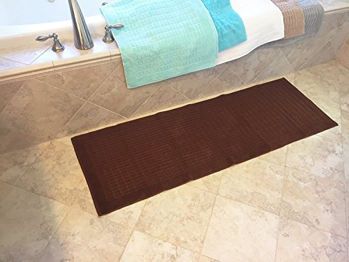 Solomon Collection 20 in. W x 59 in. H 100% Turkish Cotton Bordered Design Luxury Bathmat Runner in Brown