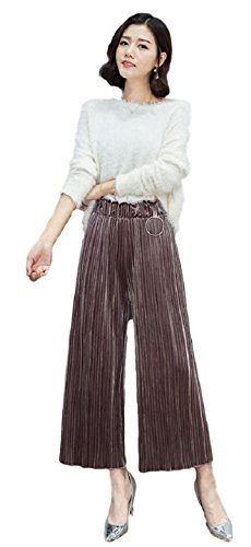 -. Title : スリーピングシープ(sleeping sheep) ストレッチ ベロア プリーツ ガウチョ ワイドパンツ リング チャーム 付き ウエストゴム ゆったり 大人 可愛い ベロアパンツ レディース (ブラウン)
