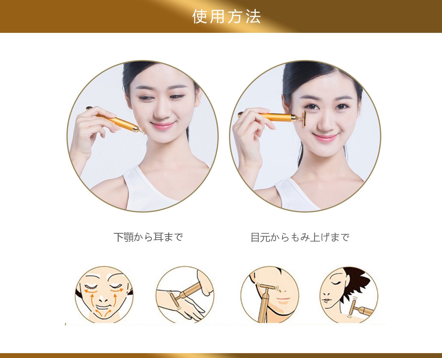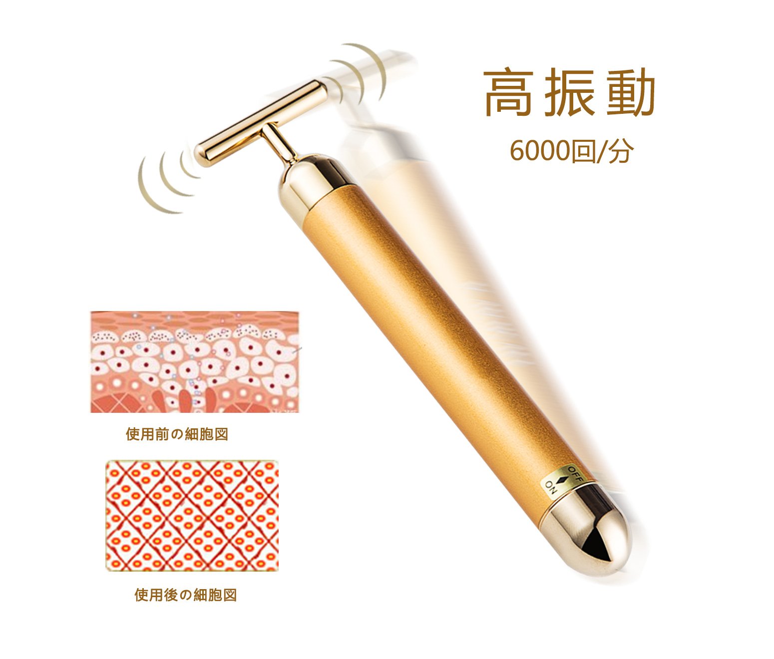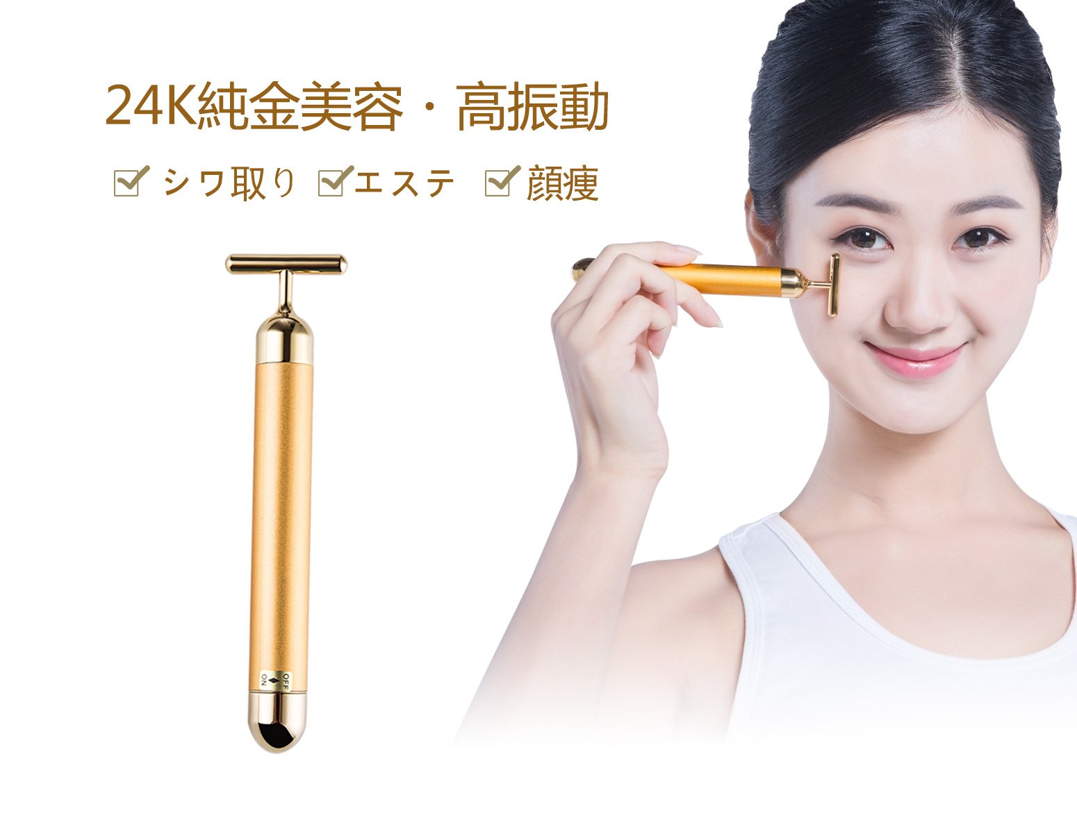 The 24k golden rod improves flow of lymph, excretes toxins and pigment by fine vibration of 6000 rpm, can eliminate dullness of the skin, can expect a whitening effect, and improves skin trouble.