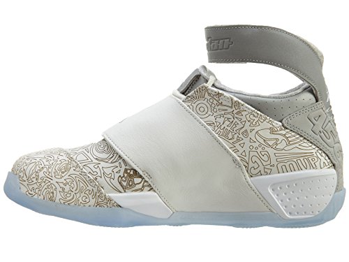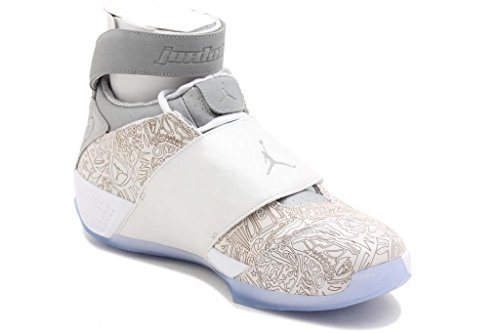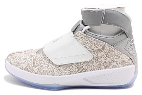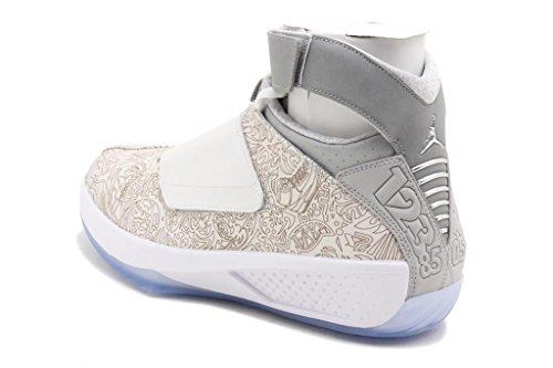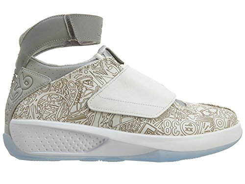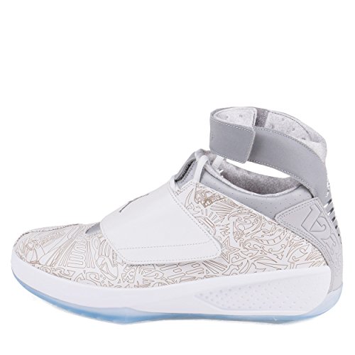 Nike Mens Air Jordan XX Laser White/Metallic Silver-White Leather Basketball Shoes