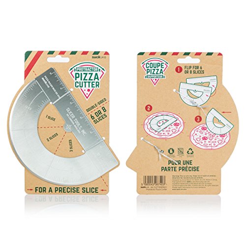 Studio : Suck UK Publisher : Suck UK Binding : Kitchen Product Description Let's face it, no one likes sharing pizza. But if you must have friends round for dinner, you should at least share fair. Use the protractor to divide up your pizza into 6 or 8 identical pieces, then effortlessly slice with the rounded blade. The Protractor Pizza Cutter has no moving parts that get squeaky over time, and better still there are no pesky wheels to clean. Divide your pizza perfectly with ease, and never be left with the smallest slice again! 0