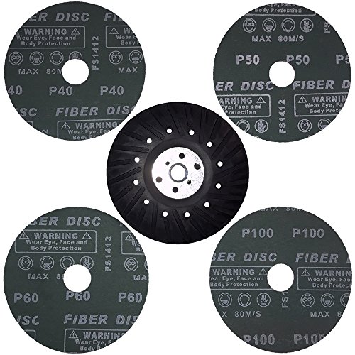 5 " BACKING PAD WITH 5/8'" TPI - 11 THREAD LOCK NUT AND 4 GRINDING RESIN FIBER DISCS with MULTI GRITS.
