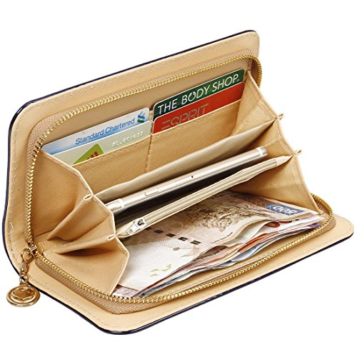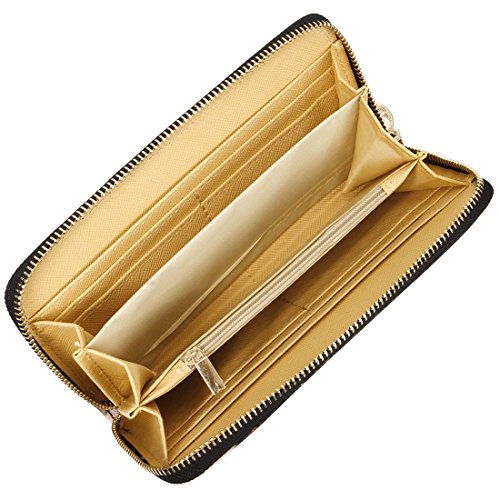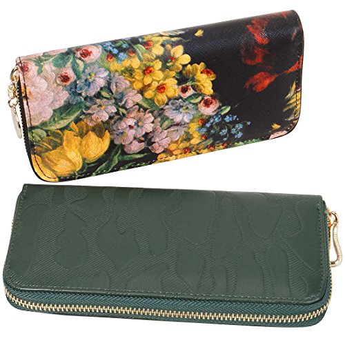 BMC Womens 2 pc Faux Leather Flowers Fatigue Fashion Clutch Zippered Wallet Set