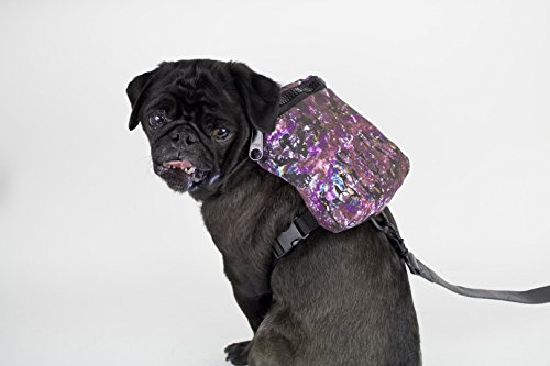 Each dog backpack has the same utility of a harness, with the added bonus of a compartment for extra goodies. No more forgetting anything; instead you'll always be ready for walks, hiking, weekending and adventuring with your beloved pet. Fashionable dog harness backpack designed for the canine adventurer. Pups Who Pack makes bold and edgy lifestyle goods for dogs. As stylish as they are functional, their dog backpacks make everyday outings Instagram-worthy. Pups Who Pack dog pack has been featured in many publications (Dogster, Bustle, Modern Dog, Brit Co, Gotham Magazine and more) and even been seen on celebrity dogs (including Doug the Pug and Gary Fisher). Bag Measurements: 6 1/2" Long x 5 1/2" Wide x 2" Deep Perfect size for everyday use, while maintaining comfort for your dog. A cross between a harness and a backpack, our pack is more of a dog harness with a bonus pouch, making it a perfect poop bag holder and more! Clip your leash to the front or the back of the bag. Side clips make the harness backpack easy to get on and off of your pup. SIZING (see size chart in photos above): XS - Neck: 11" -16" / Chest: 15 1/2" - 19 " / Weight: 10-17lbs Generally fits: Chihuahua, Yorkie, Dachshund, Pomeranian, Pekinese, Shih Tzu, Havanese and more! S - Neck: 13" - 18" / Chest: 17 1/2 "-23 1/2" / Weight: 17-29lbs Generally fits: Pug, Boston Terrier, French Bulldog, Westie, Jack Russell, Corgi, Red Poodle and more! M - Neck: 14 1/2" - 22" / Chest: 20"-27" / Weight: 30 - 50lbs Generally fits: Beagle, Border Collie, Springer Spaniel, Australian Shepherd, English Bulldog and more! Materials: Outside - 100% Printed Polyester Canvas / Lining - 100% Black Cotton Twill / Straps - 100% Nylon Webbing 0 |