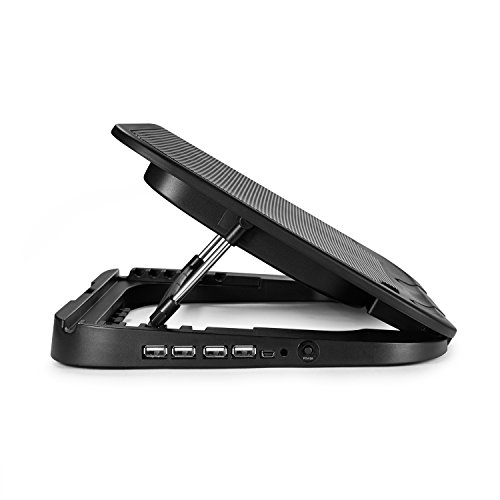 -. Feature : Slim, Light Weight, and Portable: Barely over an inch of thickness and only 1.9 lbs of weight, the AIRFOX 11"-15.6" laptop cooler is ultra-portable and protects your investment wherever you go. / Ergonomic design: With the help of ergonomic design and the adjustable Notebook Stand height setting, the AIRFOX laptop cooler provides you with the most relaxing incline angle for all-day viewing and tying / Optimized for Laptop Carrying: The high-quality multi-directional metal mesh of NP-C10 11"-15.6" laptop cooler provides your laptop with a wear-resisting and stable laptop carrying surface. / Superior Cooling, Whisper Quiet: Adjustable move Super high-speed 14cm Silent fans provide superior airflow at whisper quiet noise levels, Speed 1,400 RPM. The AIRFOX 11"-15.6" laptop cooler provides a strong 26 CFM of air flow allowing you to work all day without making any noise and interrupting your flow. / Multi-Ports: Four - Port USB Powered and MIN5P / DC3.5 allows for connecting more devices.
