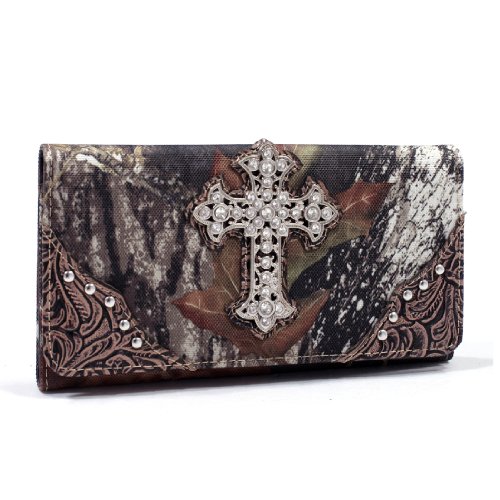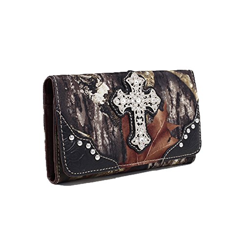 Tri-folded Mossy Oak Cross ladies wallet with rhinestones