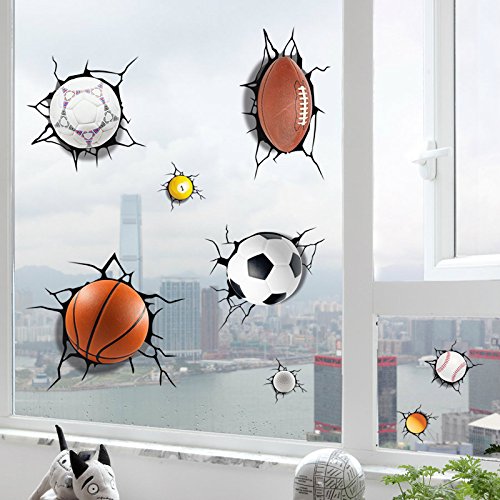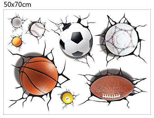 U-Shark 3D Self-adesive Removable Break Through the Wall Vinyl Wall Stickers /Murals Art Decals Decorator Kid's Favor (2080 Sports Basketball Football Soccer Tennis(50x70cm))