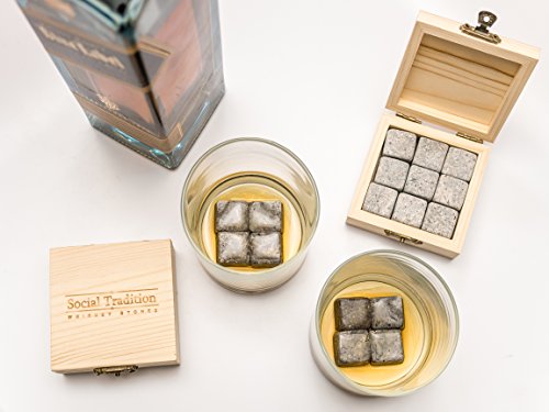 -. Title : Elegant Whiskey Stone Set in Pine Wood Gift Case -Natural Soapstone- Lifetime guarantee