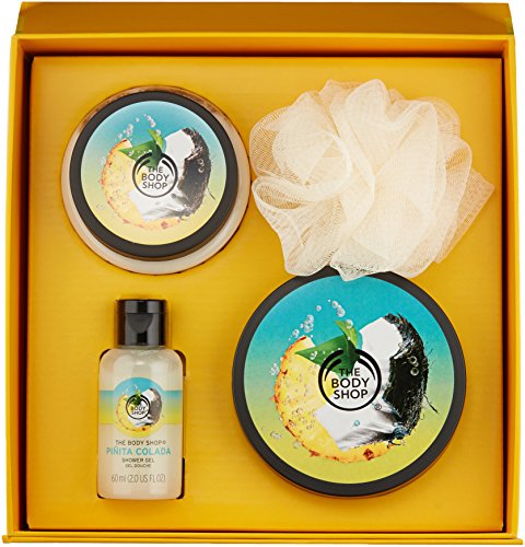 Get a taste of the tropics with this natural, summer scented limited edition body care kit, which includes a full size body scrub and body butter, and a travel-size shower gel and bath lily. Inspired by the cocktail, the piñata colada range is made with freshly-pressed pineapple, real shredded coconut and crisp coconut water, and leaves the skin refreshed, revitalized, hydrated with a delicious hint of the tropics.Feature