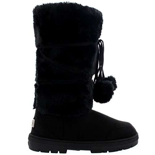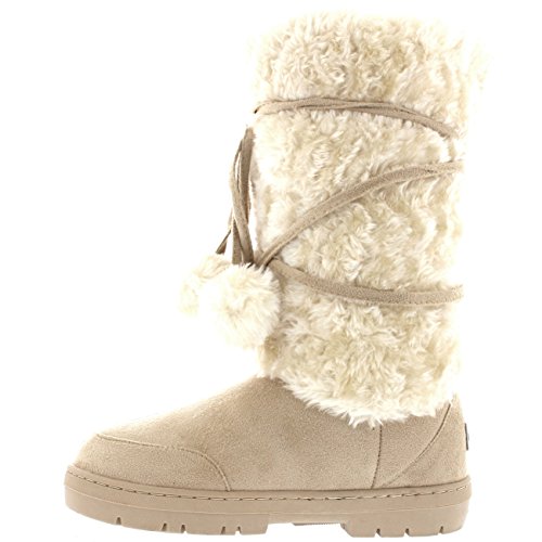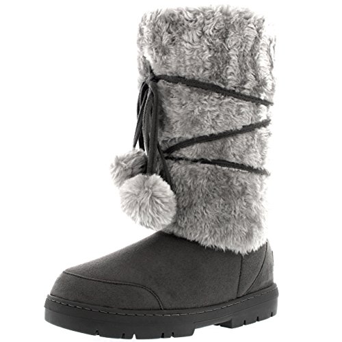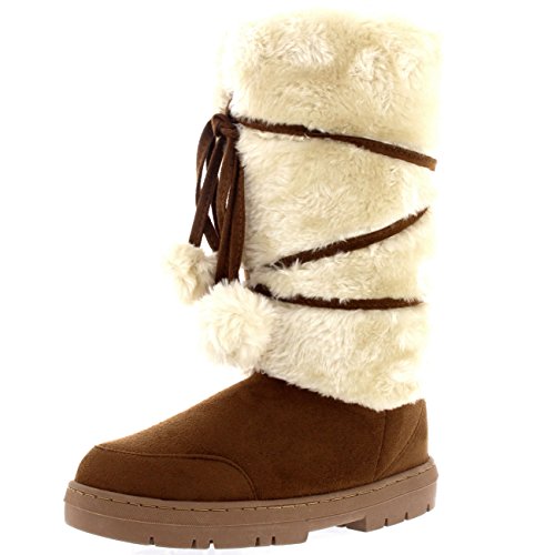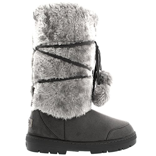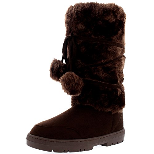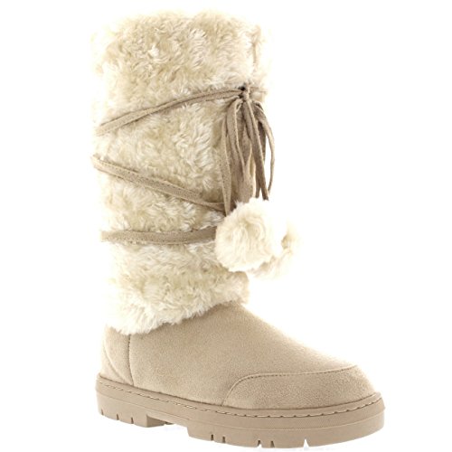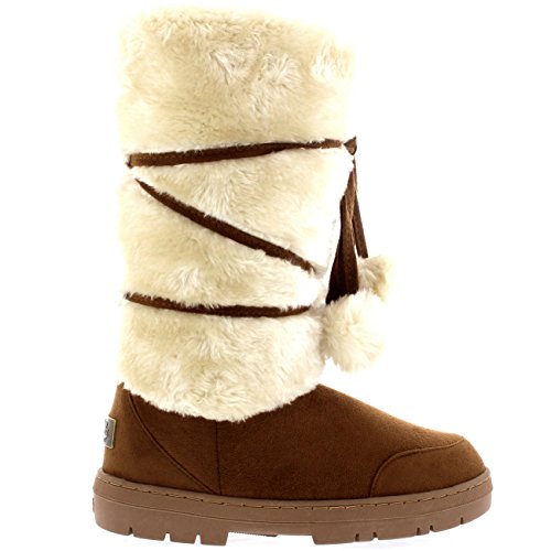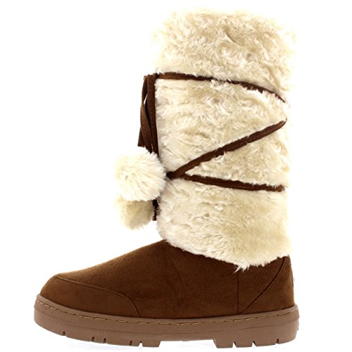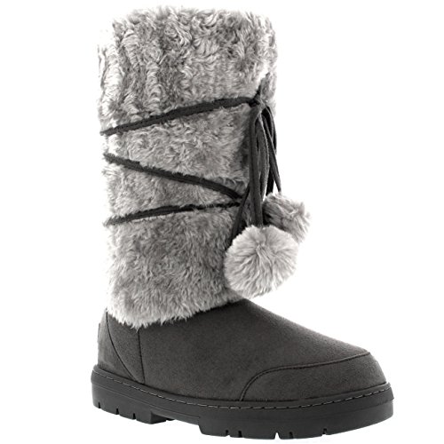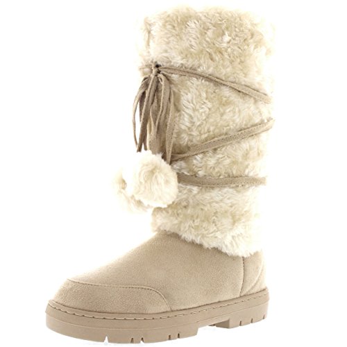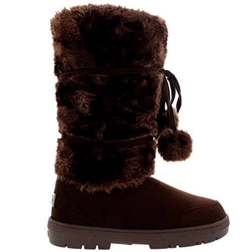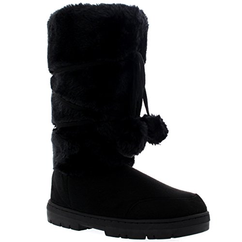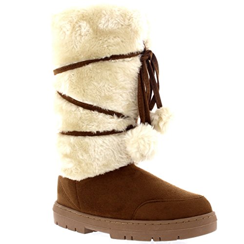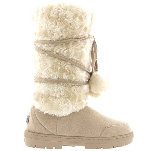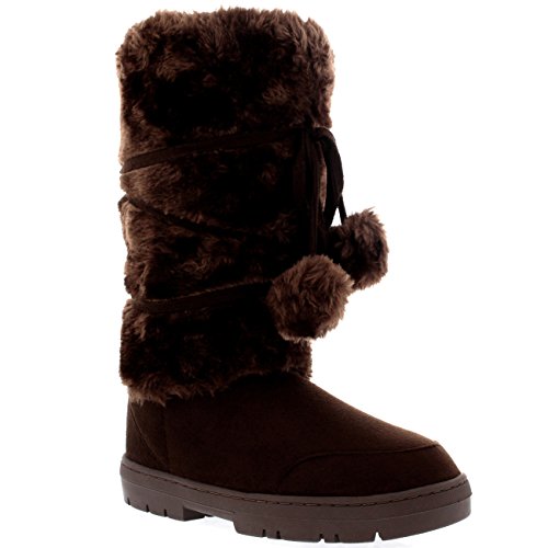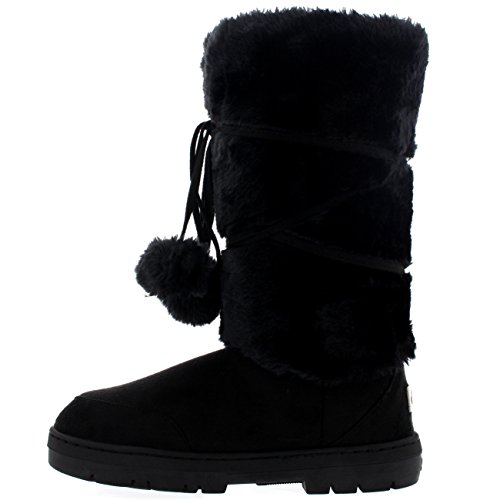 Product Description Tall Front a fur boot with lace up pom-pom design on the Front. Thick fur lined throughout the boot which is also featured along the top. The outsole is light, flexible and durable with a deep tread ideal for cold winter days. This boot will provide ultimate comfort and warmth throughout the autumn and winter seasons. 0