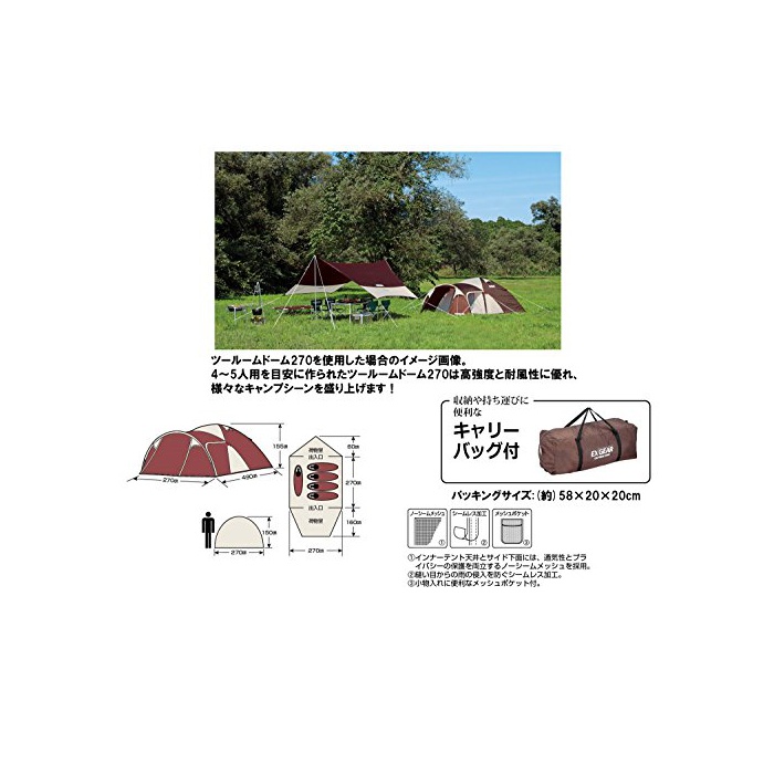 원본상품명: キャプテンスタッグ テント エクスギア ツ?ル?ムド?ム 270 UA-18 ド?ム型 4~5人用 PU加工 ベンチレ?ション機能 キャリ?バッグ付き