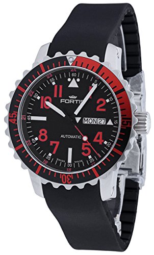 -. Title : Fortis B-42 Marinemaster Day/Date GMT Automatic Steel Red Mens Strap Watch 670.23.43 K