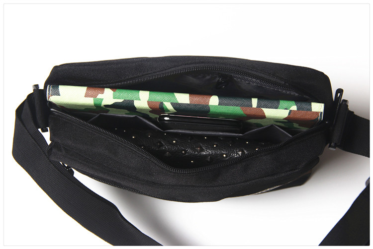 款式材料:包包采用上等牛津纺布艺制成,简约实用版型+潮味十足迷彩拼接! 容量隔层:包包属于中小号款,适合放iPad+日常随身物品+雨伞钱包等,隔层多实用性强! 卖家试用:包包轻便但很扎实,设计简约却很潮,隔层多让夏季物品有处可放!