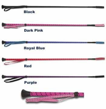 Product DescriptionThis colored whip is 27" long and features a plastic handle at one end and narrow leather keeper at the other.0