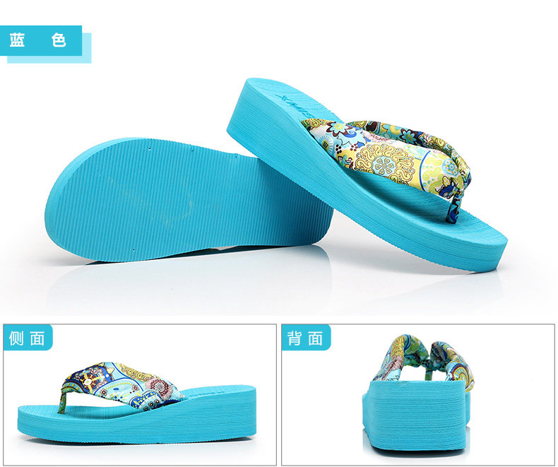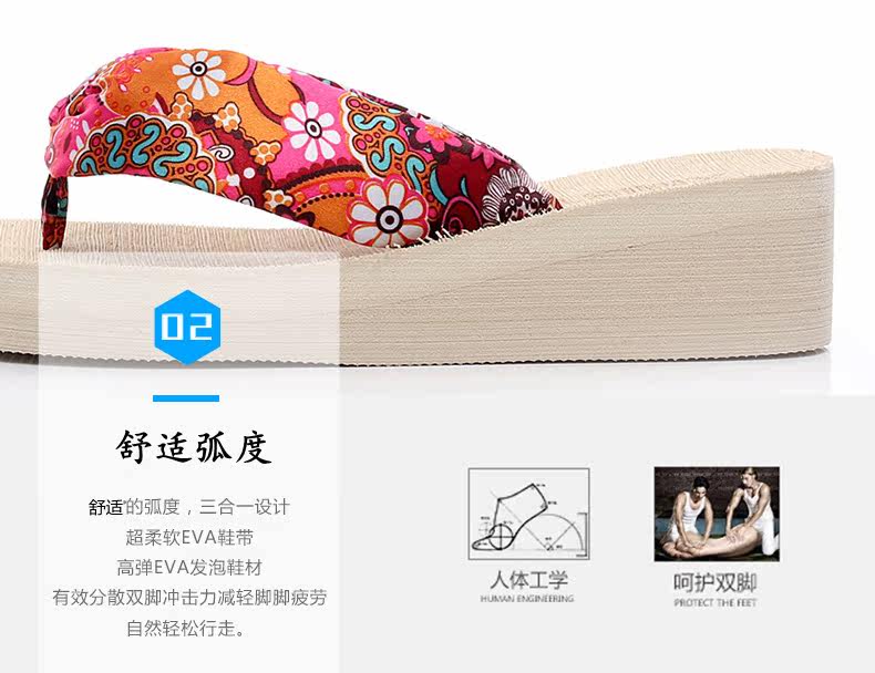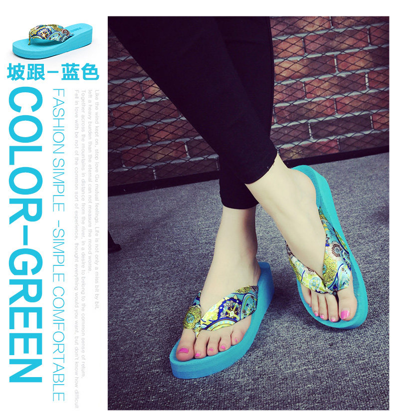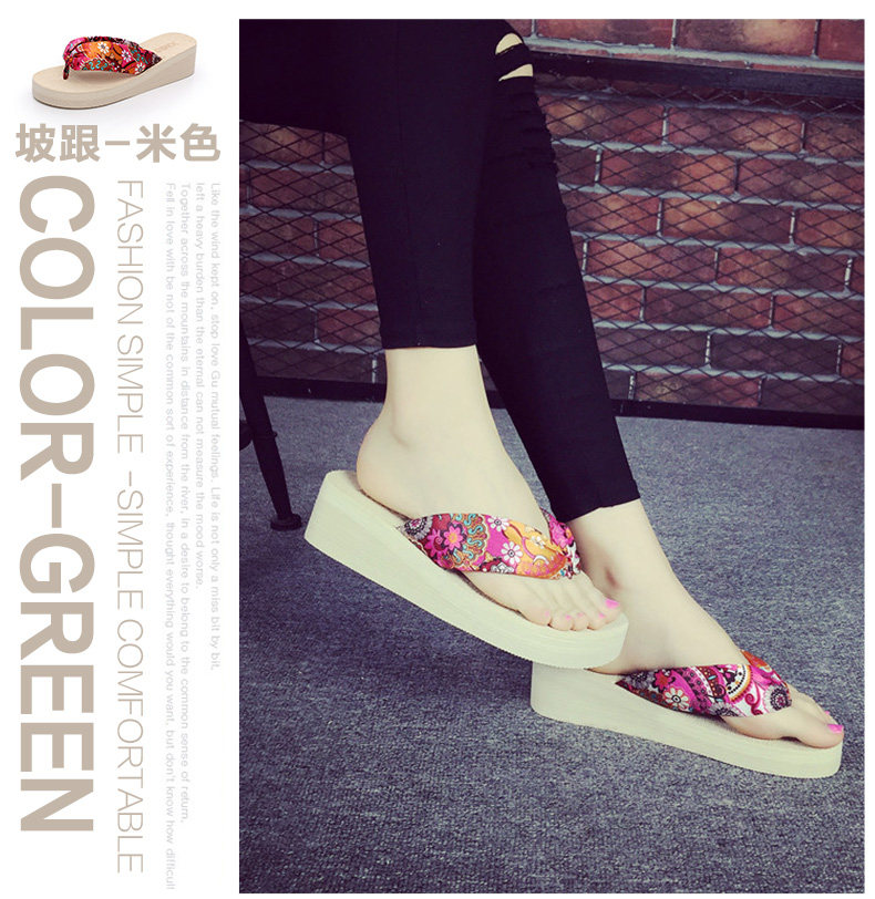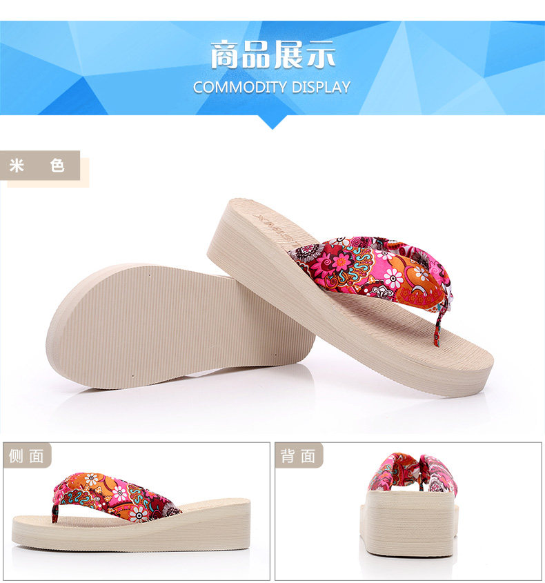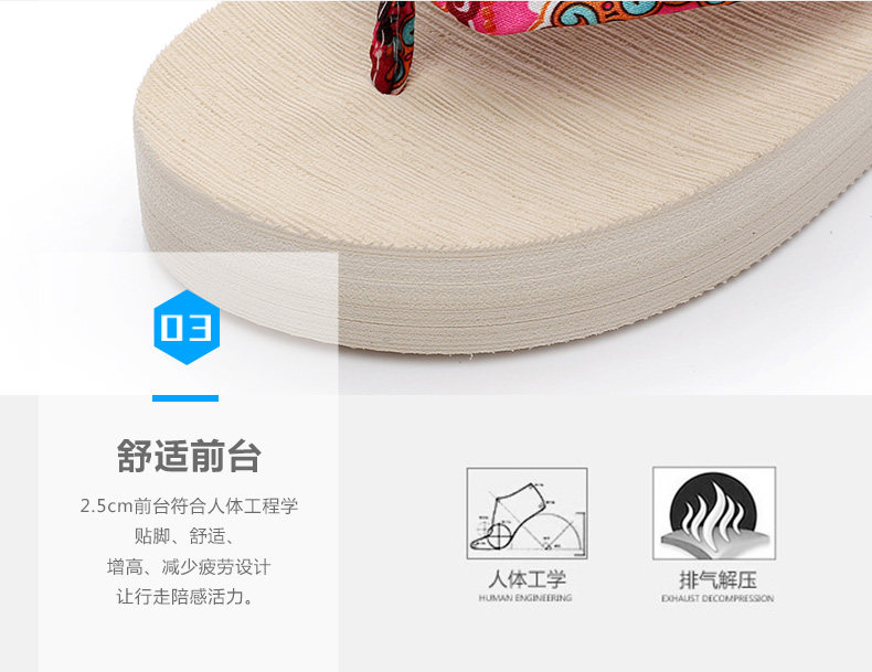 夏季时尚中跟人字拖鞋女士坡跟厚底沙滩鞋夹脚夹拖松糕凉拖鞋