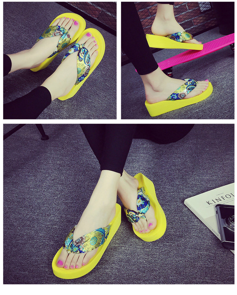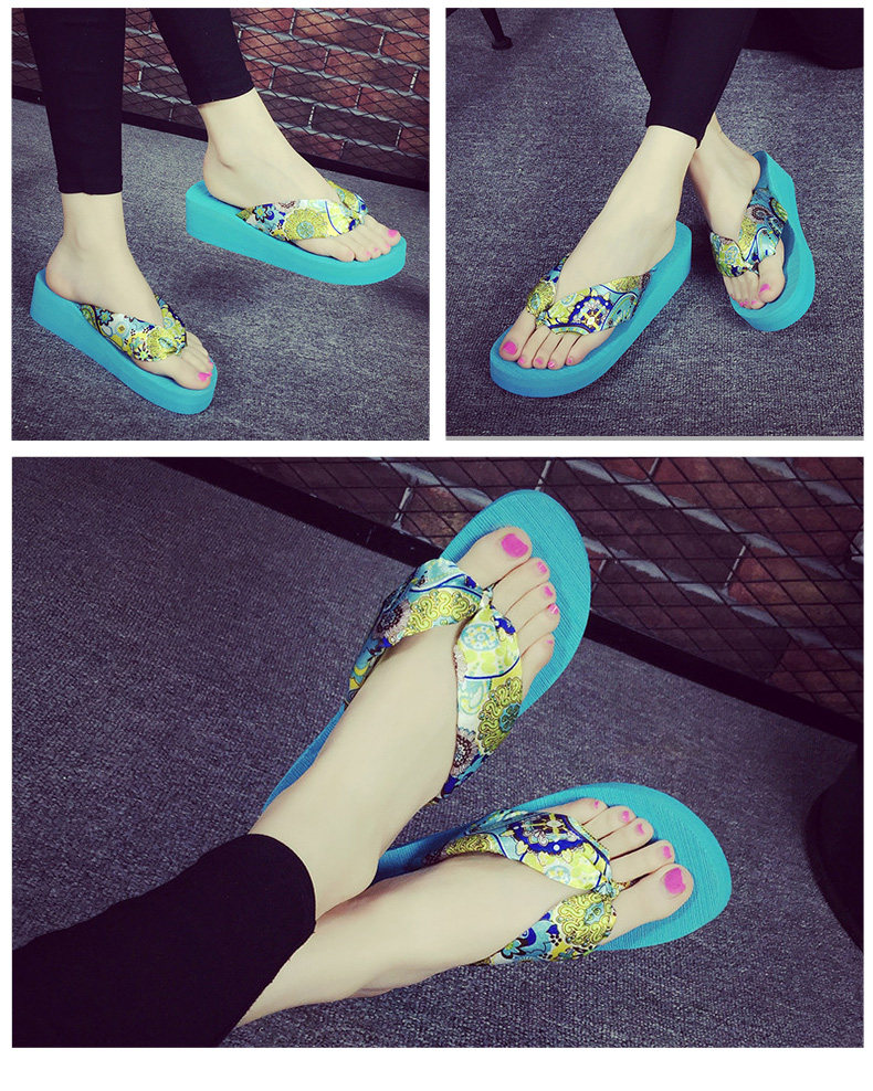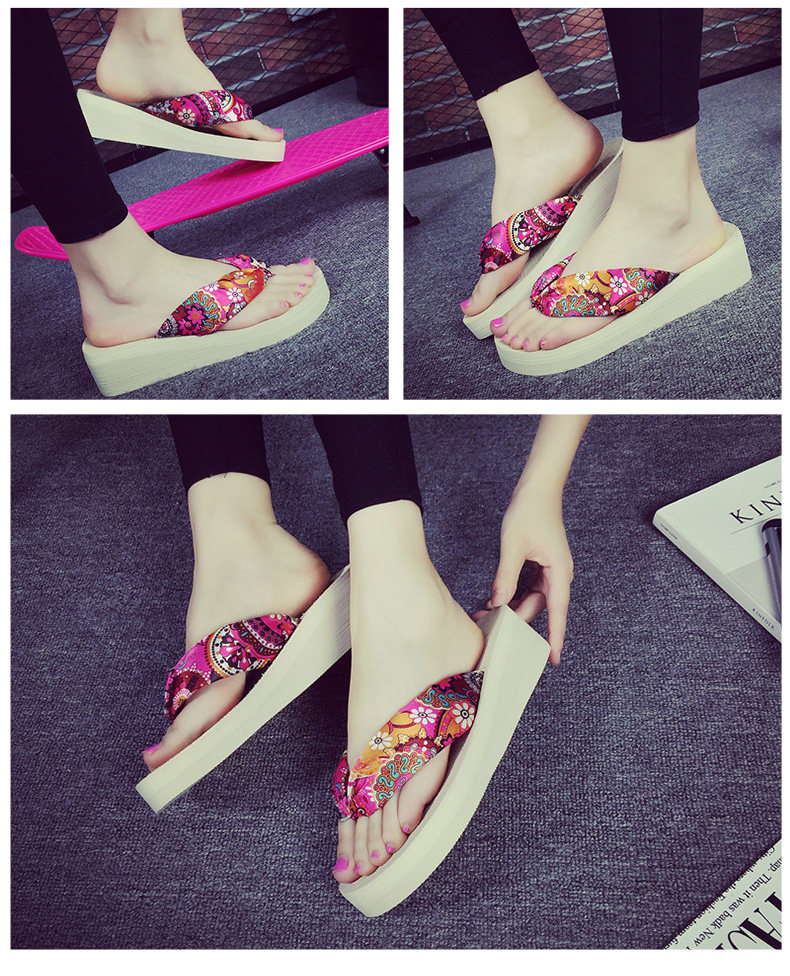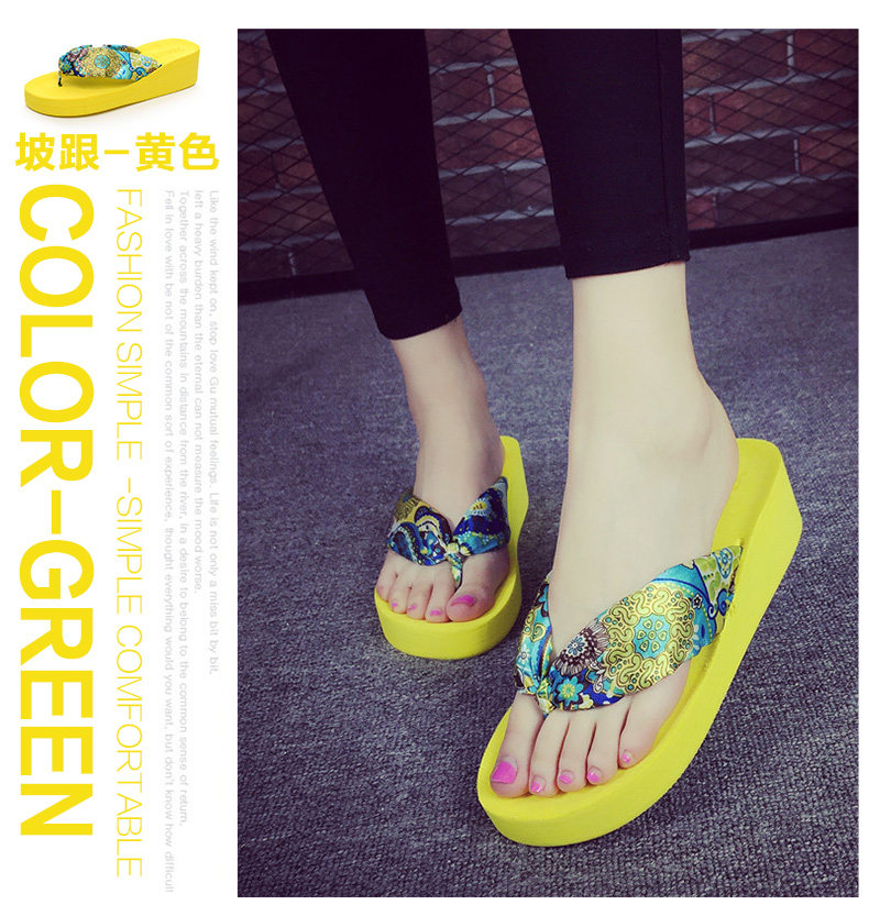 夏季时尚中跟人字拖鞋女士坡跟厚底沙滩鞋夹脚夹拖松糕凉拖鞋