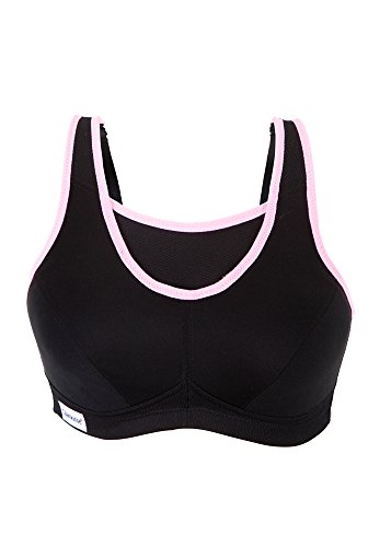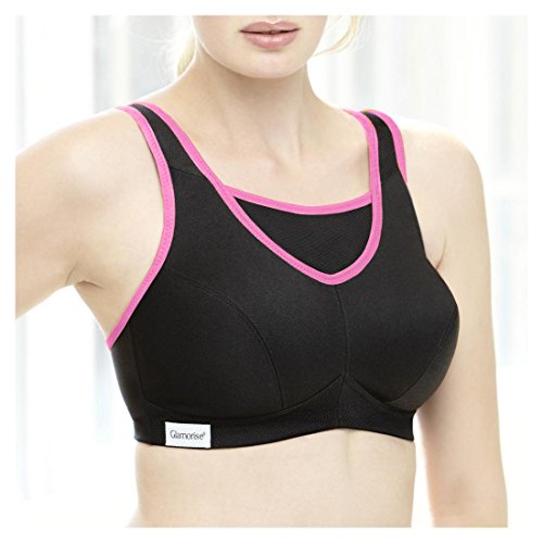 Glamorise Women's Full Figure Glamorise No Bounce Cami Sport Bra, Black/Pink, 40DD