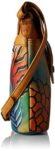 Top zip entry to main compartment. Full length open front pocket with magnetic closure. Rear has zippered pocket. Inside zippered wall pocket, cell and multipurpose pocket. Double shoulder strap with drop 12 inch