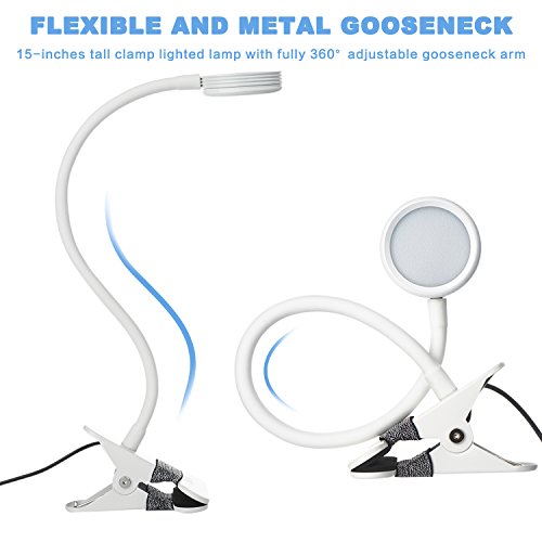 - FLEXIBLE AND METAL GOOSENECK: 15-inches tall clamp lighted lamp with fully adjustable gooseneck pipe. You can adjust it without loosening or tightening knobs to place your book light for best viewing.