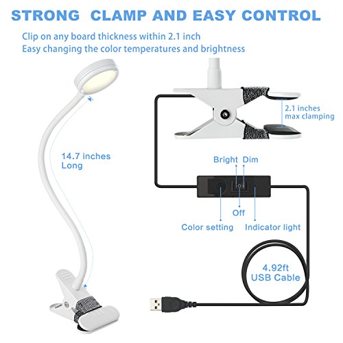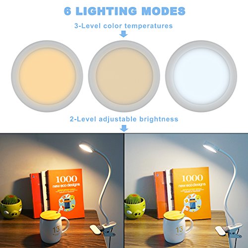 - DIMMABLE LED TABLE READING LIGHT:3-Level color temperatures and 2-Level adjustable brightness desk lamp.Total 6 models for reading, studying and sleeping also best choice for music stand light, computer keyborad partner.