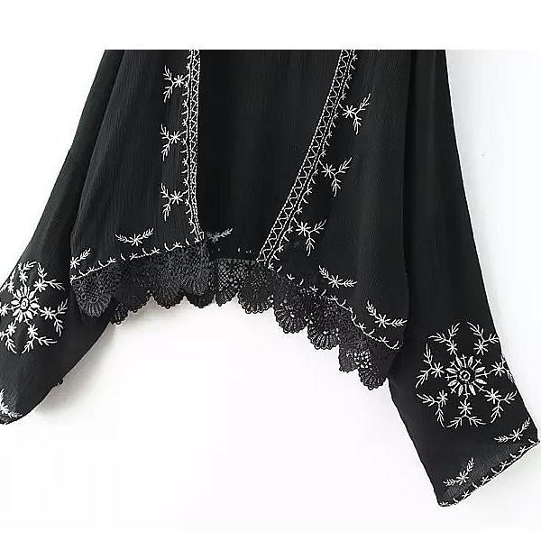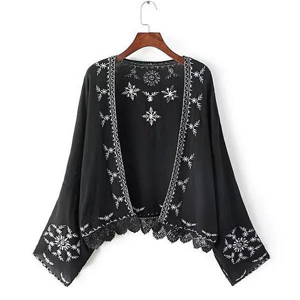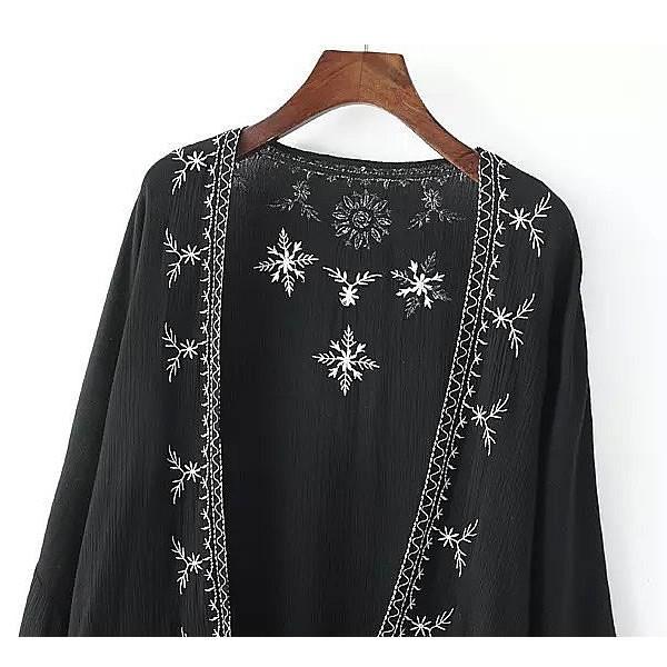 刺しゅう デザイン カーディガン 羽織り トップス 黒 ブラック