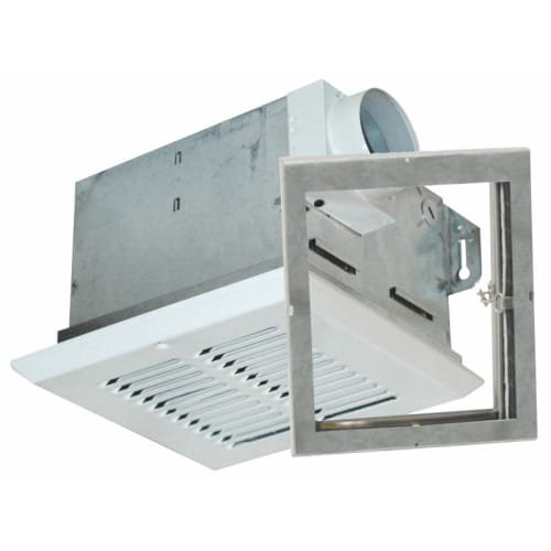 - White steel exhaust fan provides ventilation at low sound levels