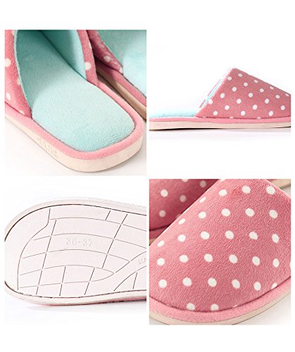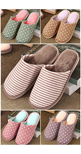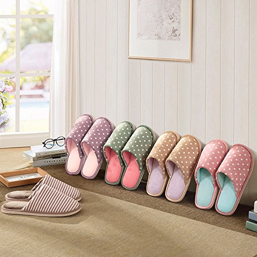 (SOCOMP)/Women's/Slippers/DIRECT FROM USA/SOCOMP Cute Stripe Polka Dot Plush Winter Slipper Anti-Slip Warm Cozy House Slipper Indoor...