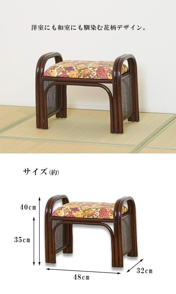 fk094igrjs軽くて持ち運び便利なので、色々な場所でお使いいただけます サイズ (約)W48×D32×H40(SH35)cm 個装サイズ:50×35×43cm 重量 約2kg 個装重量:3000g 素材・材質 ラタン(ラッカー塗装) 張り材:ポリエステル100% クッション材:ウレタンフォーム 仕様 完成品 製造国 インドネシア 洋室にも和室にも合うデザイン 軽くて持ち運び便利なので、色々な場所でお使いいただけます
