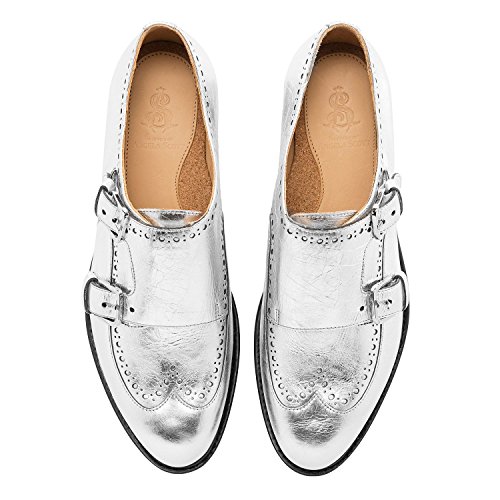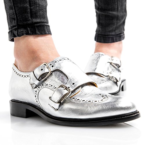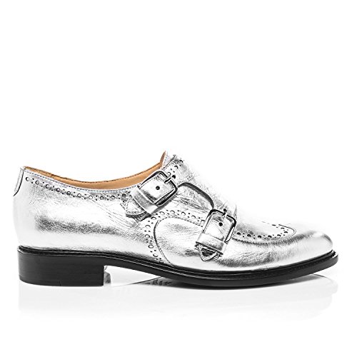 Product DescriptionSilver metallic Italian leather double monkstrap from The Office of Angela Scott.0