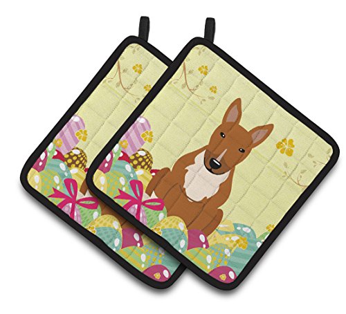 Caroline's Treasures Easter Eggs Bull Terrier Red Pair of Pot Holders, 7.5HX7.5W, Multicolor