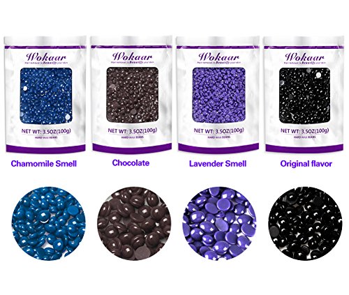 - Four different flavors wax beans:Natural wax Ingredients Chamomile, lavender, chocolate, original flavor.Widely used For Body multiple parts.Can remove 98% your body hair.