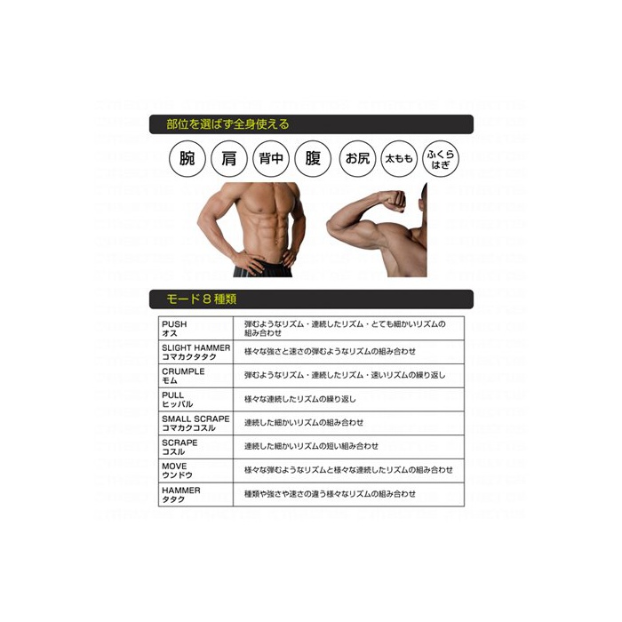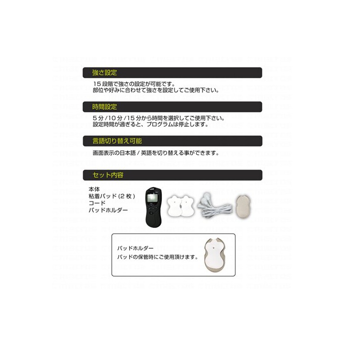 사양:모드/8종류,힘 설정/15단계,시간 설정/5 분10 분15분,언어 표시 교환/일본어 영어