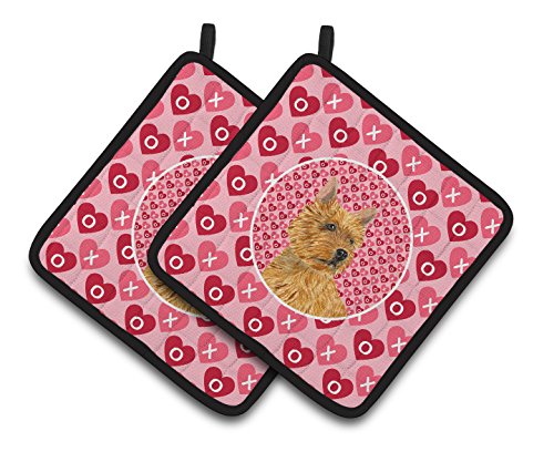 Caroline's Treasures Norwich Terrier Hearts Love & Valentine's Day Portrait Pair of Pot Holders SS4499PTHD, 7.5HX7.5W, Multicolor