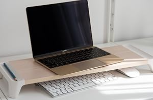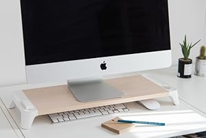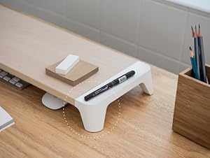 モニターはもちろん、ノートパソコンスタンドとしても使用可能。下にキーボードやマウスなどを収納し、デスク周りのスペースを最大限活用できます。