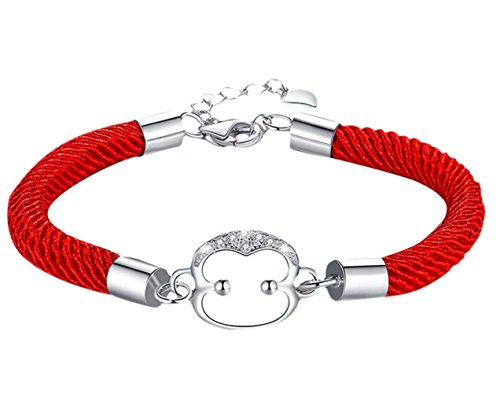 -. Title : Sojewe Women Sterling Silver Monkey Red Rope Bracelet of Cubic Zirconia Rhodium Plated Anniversary