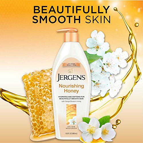 Feed your skin with Jergens Nourishing Honey Dry Skin Body Moisturizer. Orange blossom essence and honey, known for its natural abilities to draw moisture from the air and into the skin, plus a HYDRALUCENCE blend, provide long-lasting hydration and visible luminosity. Lightly fragranced with uplifting orange blossom, the lotion absorbs quickly, so it never feels greasy. Skin is visibly softer, smoother, and deeply nourished.