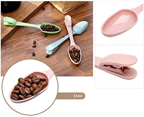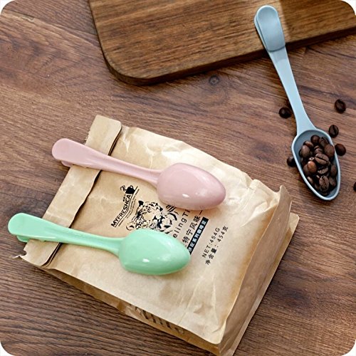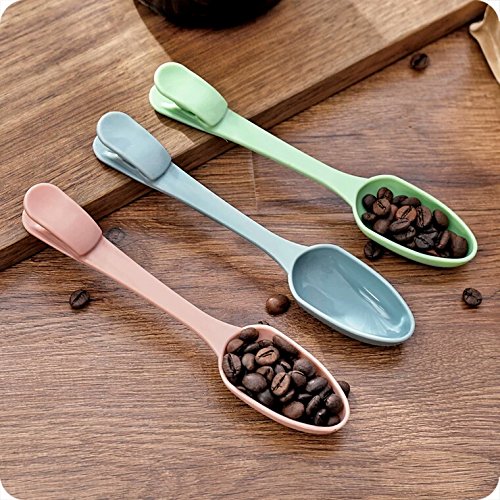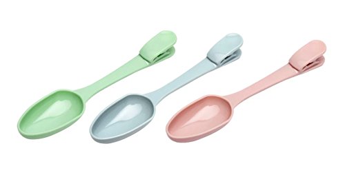 Clip Spoons, Hoocozi Measuring Spoons with Seal Clips, 3pcs, Assorted Color, 7"