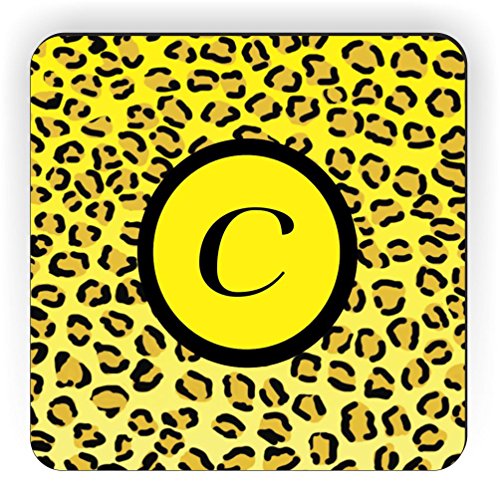 Rikki Knight Letter "C" Initial Yellow Leopard Print Monogrammed Design Square Fridge Magnet