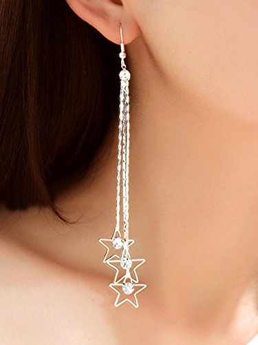 -. Title : A&C Fashion Korean Version Rhinestones Star Shapes Earrings for Women. Unique Handmade Earrings Jewelry for Girl. (Silver Color)