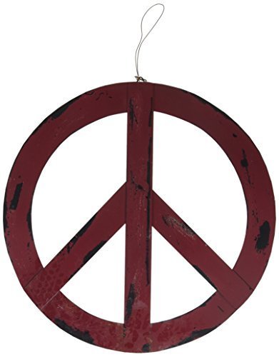 Y&k Dcor Metal Treasured Red Peace Sign 16"