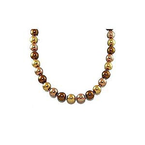 Formal bronze, taupe and light gold colored pearls with gold magnetic clasp with rhinestones Clasp can be worn in front. Necklace should be worn with dressy attire. Dress it up with a matching earring. Length: 17.5" long Chain: Gold Clasp: Large Gold Magnetic Clasp with Rhinestones Size or Pearl: 12mm Pearls For Bridesmaids or Formal Events: Bronze, taupe and light gold pearls look great with a number of shades of brown/champagne bridesmaid gowns. Matching Earring: Formal Bronze and Gold Pearl Earring or Formal Taupe and Gold Pearl Earring Matching Bracelet: Formal Bronze, Gold and Taupe Pearl Stretch BraceletFeature