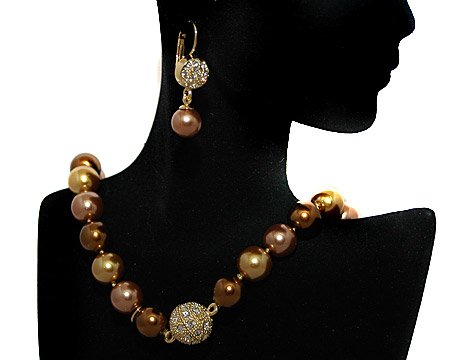 Formal bronze, taupe and light gold colored pearls with gold magnetic clasp with rhinestones