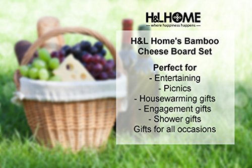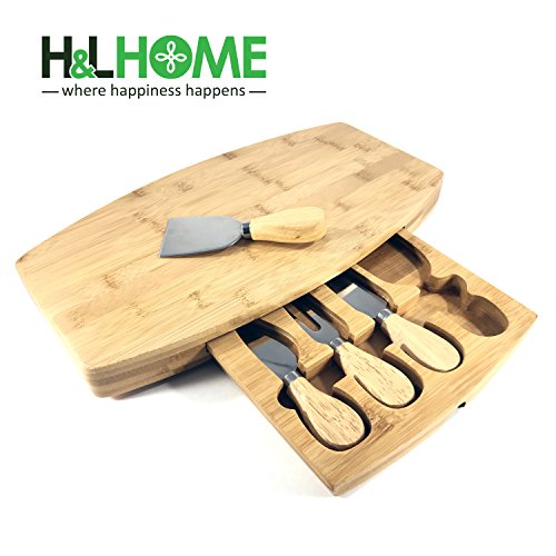 The HL Home Cheese Board Set is designed with you in mind. Entertain in style with the beauty of bamboo and the elegance of a cheese platter that will impress your most discerning guests. The 12.2 x 7.5 inch, FDA certified, beautifully finished, stylishly shaped board is the perfect size for serving multiple cheeses at your next gathering. The warmth of natural bamboo is the perfect foundation for an elegant display of your pecorino, brie and gorgonzola to impress your guests when you entertain. Each durable, stainless steel serving knife has a purpose and the included guide will ensure that you know which knife to use with each cheese you serve. The removable drawer is a perfect place to rest the knives during the party, as well as for storing and transporting to your favorite park for a picnic. Pair the cheese board set with a bottle of wine as the perfect gift for weddings, showers, new homes, birthdays and holidays. It is the perfect addition to your holiday gatherings, parties and casual get-togethers. HL Home offers an exclusive manufacturer's limited warranty for 1 (one) year from date of purchase. This warranty is limited to sales from KBM Ventures, Inc. only. 0 |