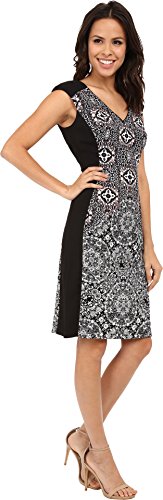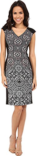 Studio : London Times Women's Dresses Publisher : London Times Women's Dresses Binding : Apparel Product Description Smooth poly-stretch fabrication features a printed design throughout with solid panels at the shoulders and sides. V-neckline. Cap sleeves. Hidden back-zip closure. Straight hem. 97% polyester, 3% spandex. Hand wash cold, hang dry. Imported. 0