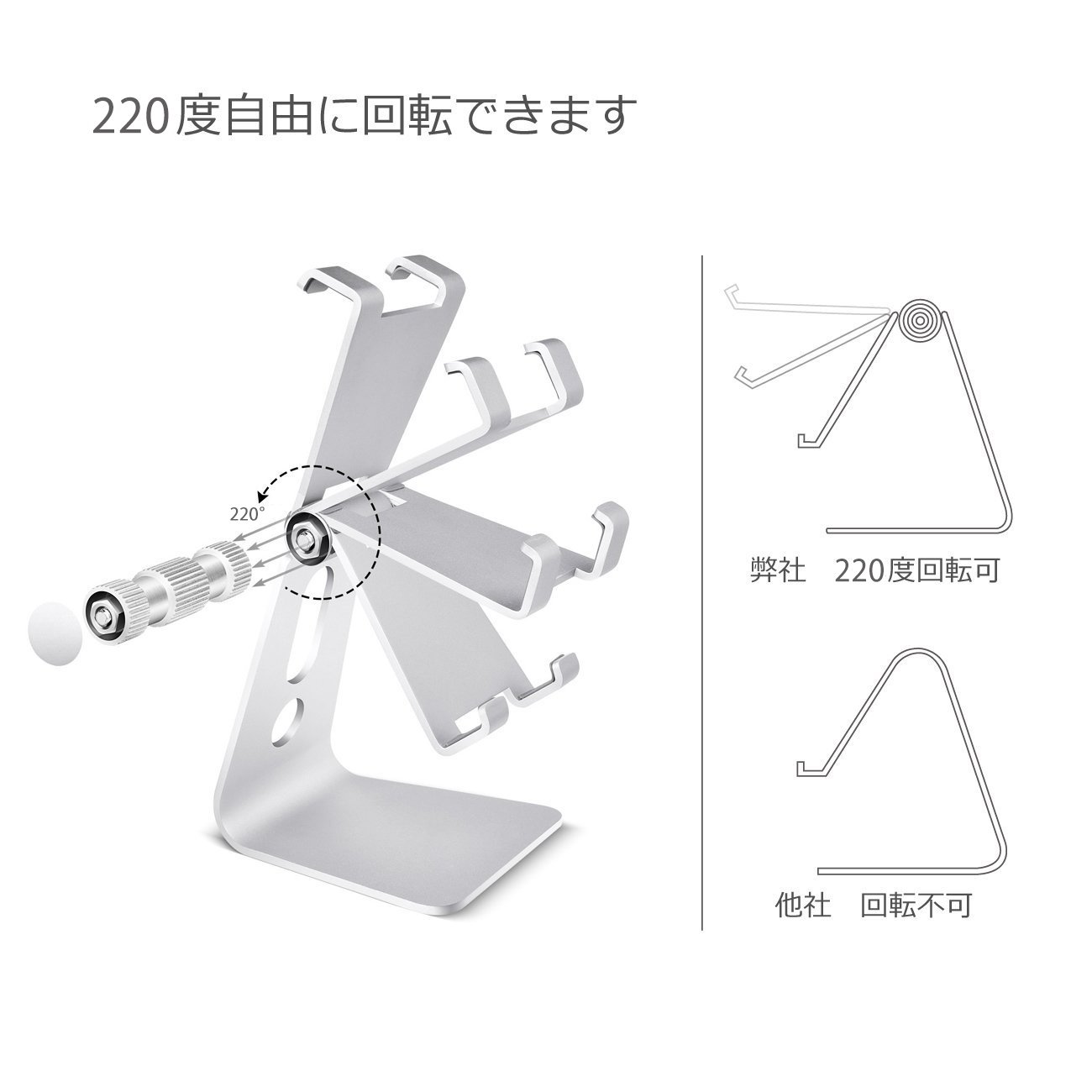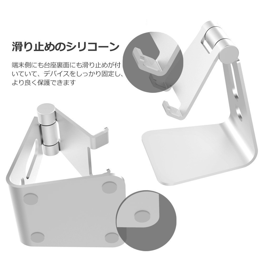 : Non slip silicone is stuck on the bottom of the stand and the inside of the nail so that it does not slip, holding on the smartphone well holds, the stability of the foot itself is high.