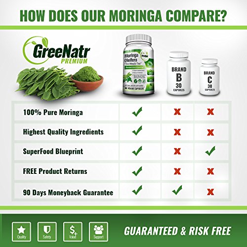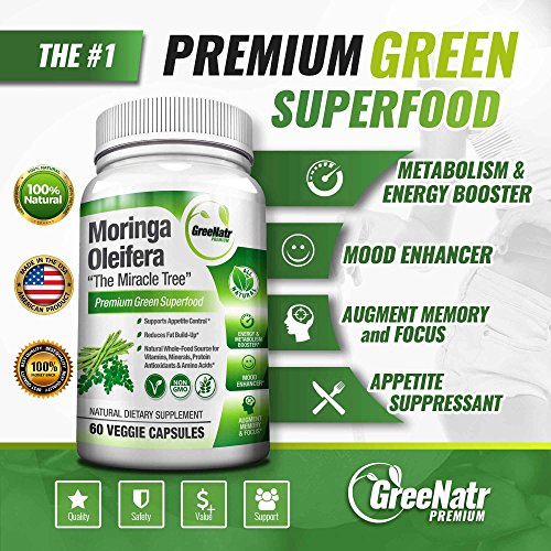 Pure Moringa Oleifera Leaf Extract Capsules * 100% NATURAL Premium Green Superfood * Natural Weight Loss Supplement + Energy & Metabolism...