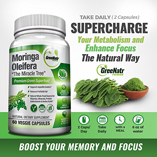 BOOST YOUR MEMORY AND FOCUS, GreeNatr’s Moringa Capsules are the top Premium Superfood Containing Essential Vitamins & Minerals, 46 Antioxidants, 35 Anti-inflammatory, All 9 Essential Amino Acids.