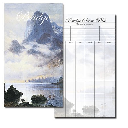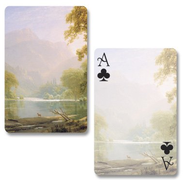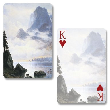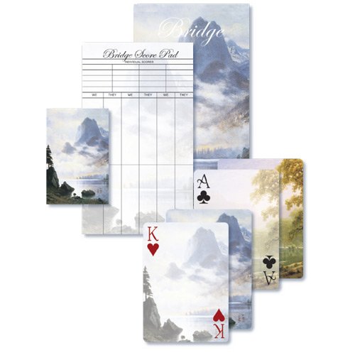 - Feature : Liven up your next game of bridge with these unique and beautiful playing cards featuring fine art images on both the back and face of the card! / Set includes a double deck of bridge-size playing cards, one dozen matching tallies and a score pad. / Double deck of bridge size cards measure 2-1/4" x 3-1/2". / Set packaged in a beautiful gold gift box. / This set, featuring the artwork of Albert Bierstadt, makes the perfect gift for discriminating bridge players.