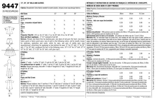 -. Binding : Misc. -. Brand : Simplicity Creative Group Inc - Patterns -. Color : various -. EAN : 5053433772636 -. Feature : Raggedy ann and andy dolls in size os (one size) simplicity pattern 9447 / Number of looks included:2 / Instructions are written in English, Spanish, and French / Designed and manufactured in the U.S.A / Sested fabrics: broadcloth; extra fabric needed to match plaids, stripes or one-way design fabrics -. IsAdultProduct : 0 -. IsAutographed : 0 -. Label : Simplicity Creative Patterns -. Manufacturer : Simplicity Creative Patterns -. Model : 9447 -. MPN : 9447 -. NumberOfItems : 1 -. PackageQuantity : 1 -. PartNumber : 9447 -. ProductGroup : Art and Craft Supply -. ProductTypeName : HOME -. Publisher : Simplicity Creative Patterns -. ReleaseDate : 2011-02-14 -. Size : OS (ONE SIZE) -. SKU : 496190 -. Studio : Simplicity Creative Patterns -. Title : Simplicity Sewing Pattern 9447 Raggedy Ann and Andy Dolls, One Size -. UPC : 039363244073